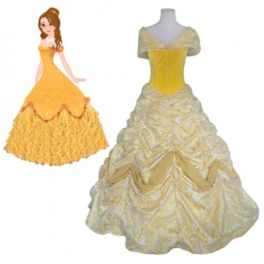 Amazon Com Beauty And The Beast Princess Belle Cosplay Dress Long Yellow Dress For Women Custom Costume Male Xl Clothing Shoes Jewelry